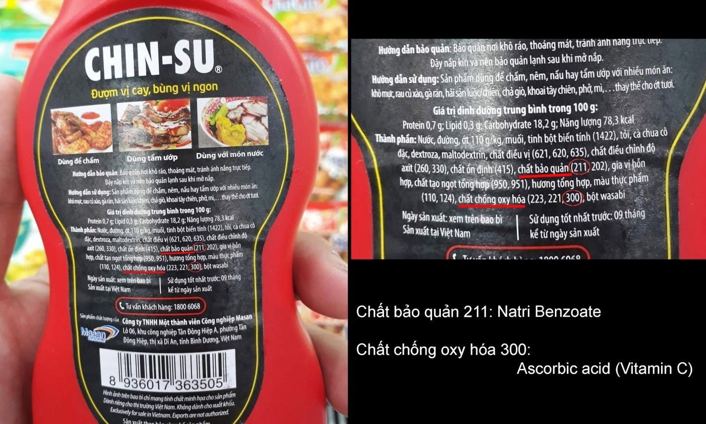 Hơn nữa, trong thành phần bổ sung các chất phụ gia thì sản phẩm tương ớt Chin-su còn bổ sung thêm Vitamin C dưới dạng chất chống oxi hóa với mã số 300!